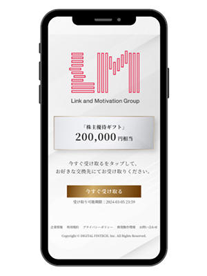 | 優待のポイント | 権利確定日に保有する株数および継続保有期間に応じて、年2回の頻度でデジタルギフト(R)を進呈いたします。デジタルギフト(R)は電子マネーや各種ポイント、QUOカード等多様な交換が可能です。 |