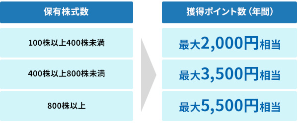 400株以上①最大3,500円相当+②