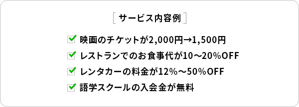 グルメ・レジャー・ショッピング・スポーツ・旅だけでなくeラーニング等の学習コンテンツ、育児・介護・健康・引っ越し等ライフイベントに関わるものまで、140万件と幅広いサービスを通常より割引価格で利用することができます。